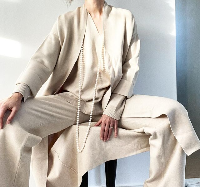 Daher habe ich mich mit schöner, cozy Homewear eingedeckt. Dazu trage ich schöne Wildlederslipper und meine Perlenkette. Ein Hauch meines Lieblingsduftes und fertig ist der Luxury Sunday Style.